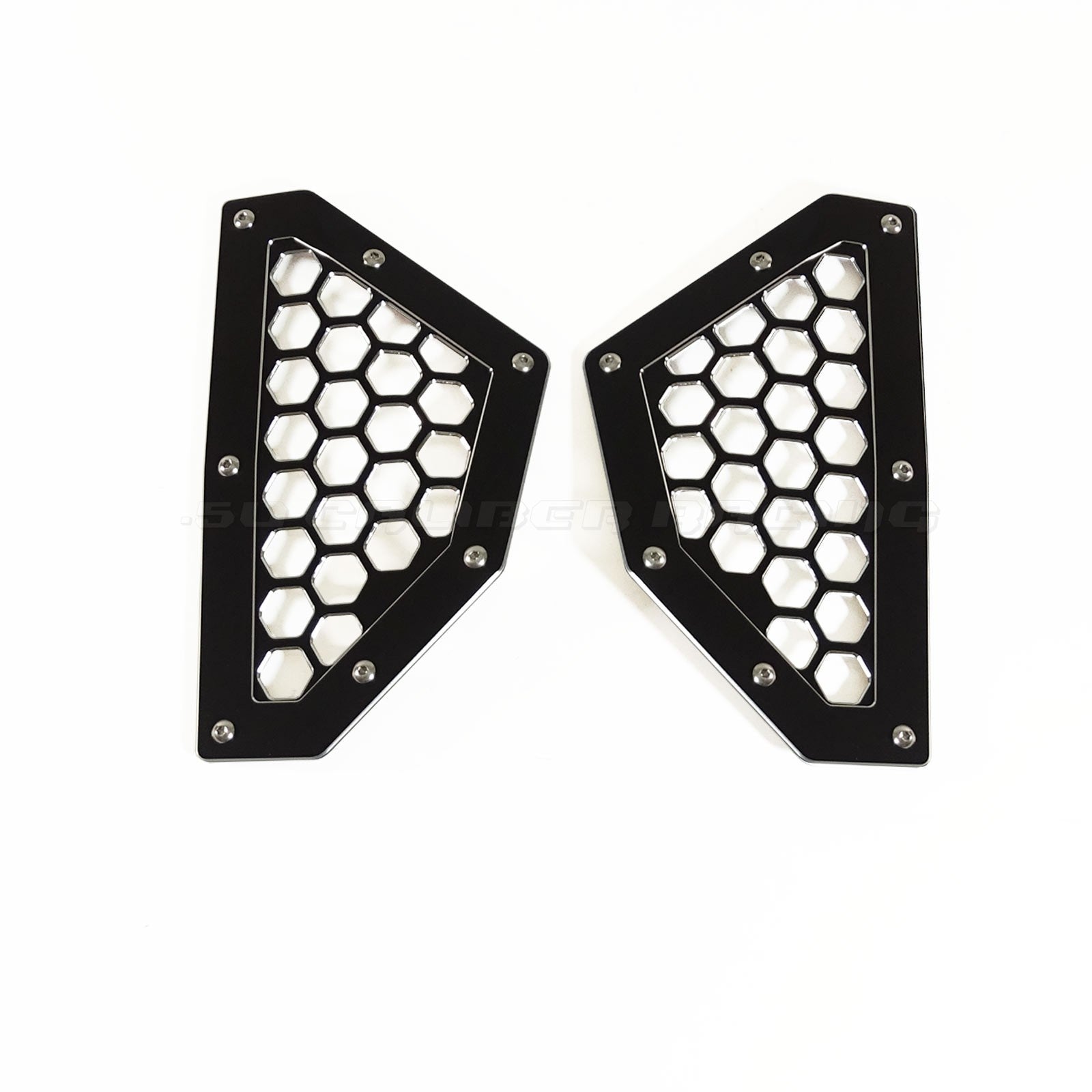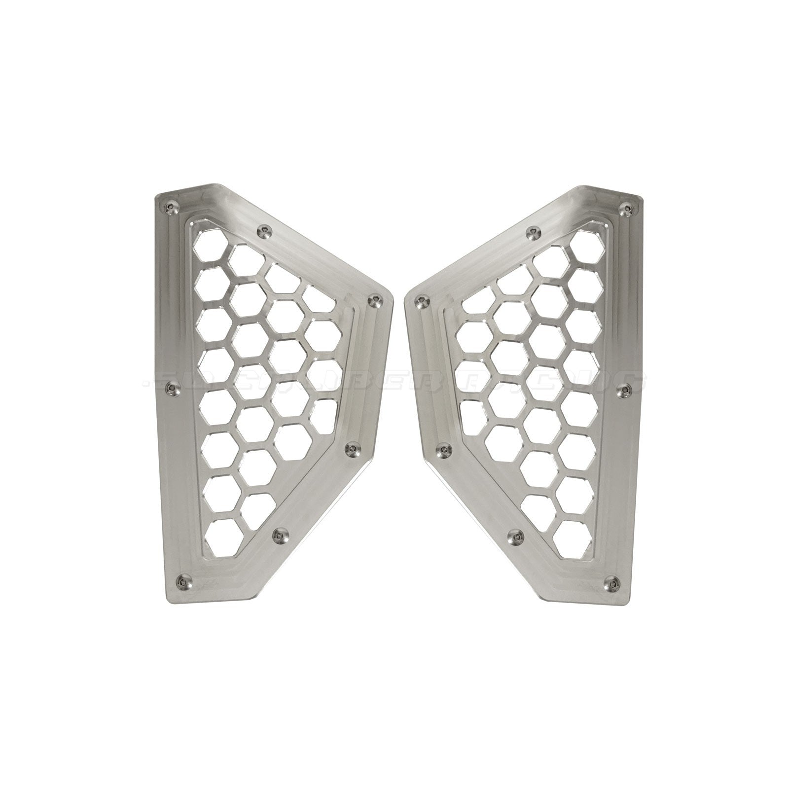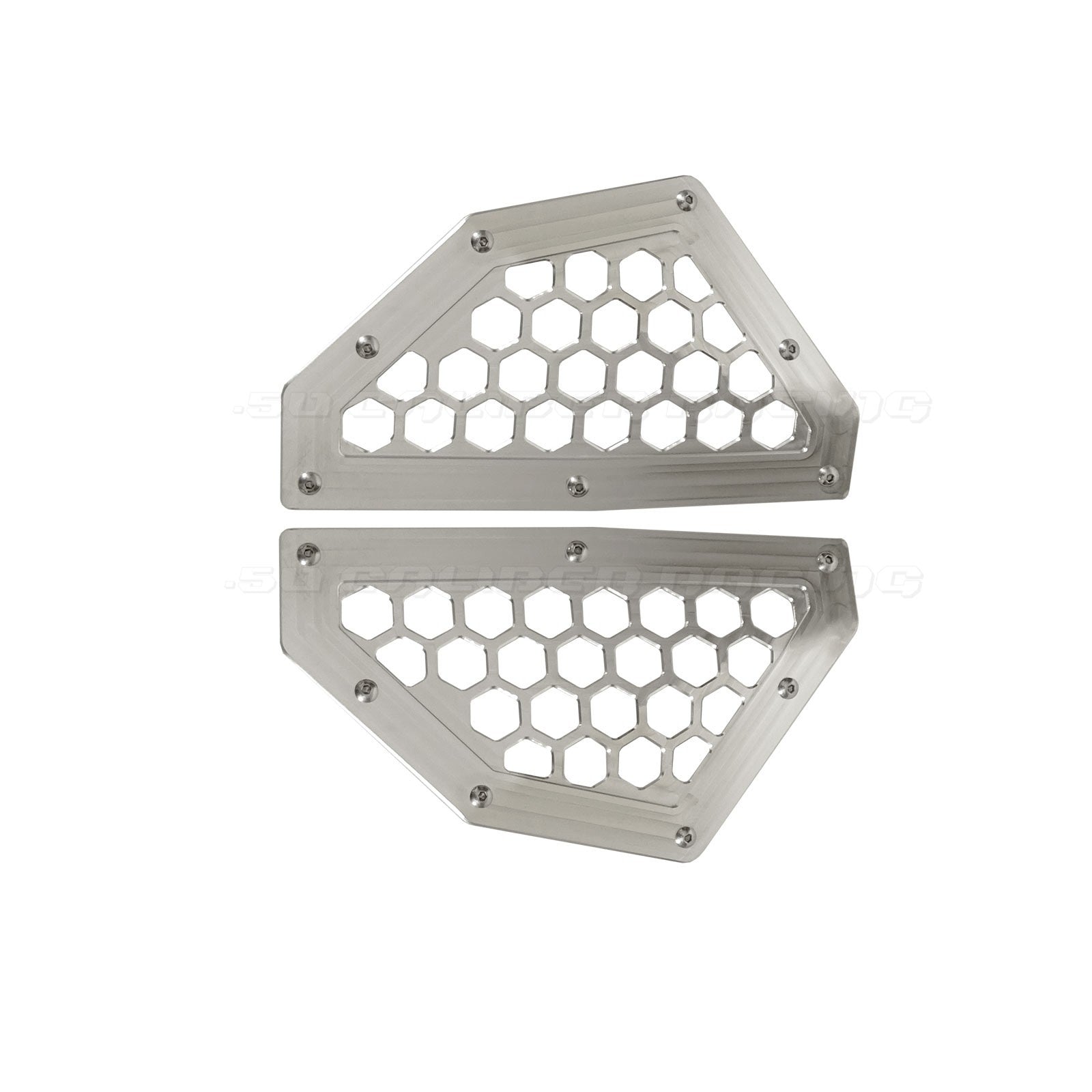 Add a unique look to your Can-Am X3 with our custom CNC billet aluminum rear grill bezels. Fits in the body panel at the rear of the car, and transforms the look of your car drastically. Machined from 6061 billet aluminum, powdercoated, then a relief engraving process afterwards creates a two toned effect that you can't get anywhere else. If you want to stand out from the crowd this is the grill for you. Includes stainless steel hardware for a quick and easy installation. Available in several colors.