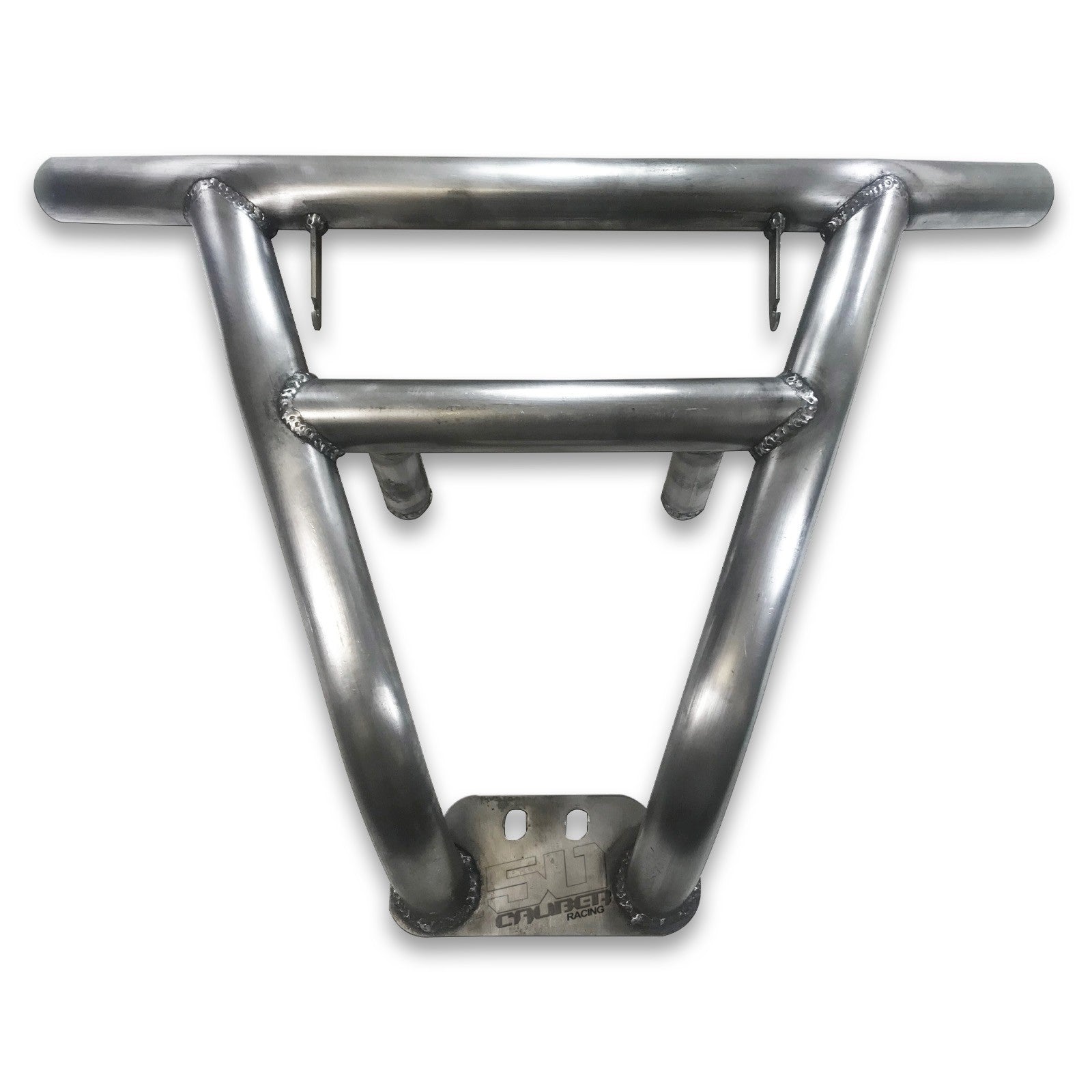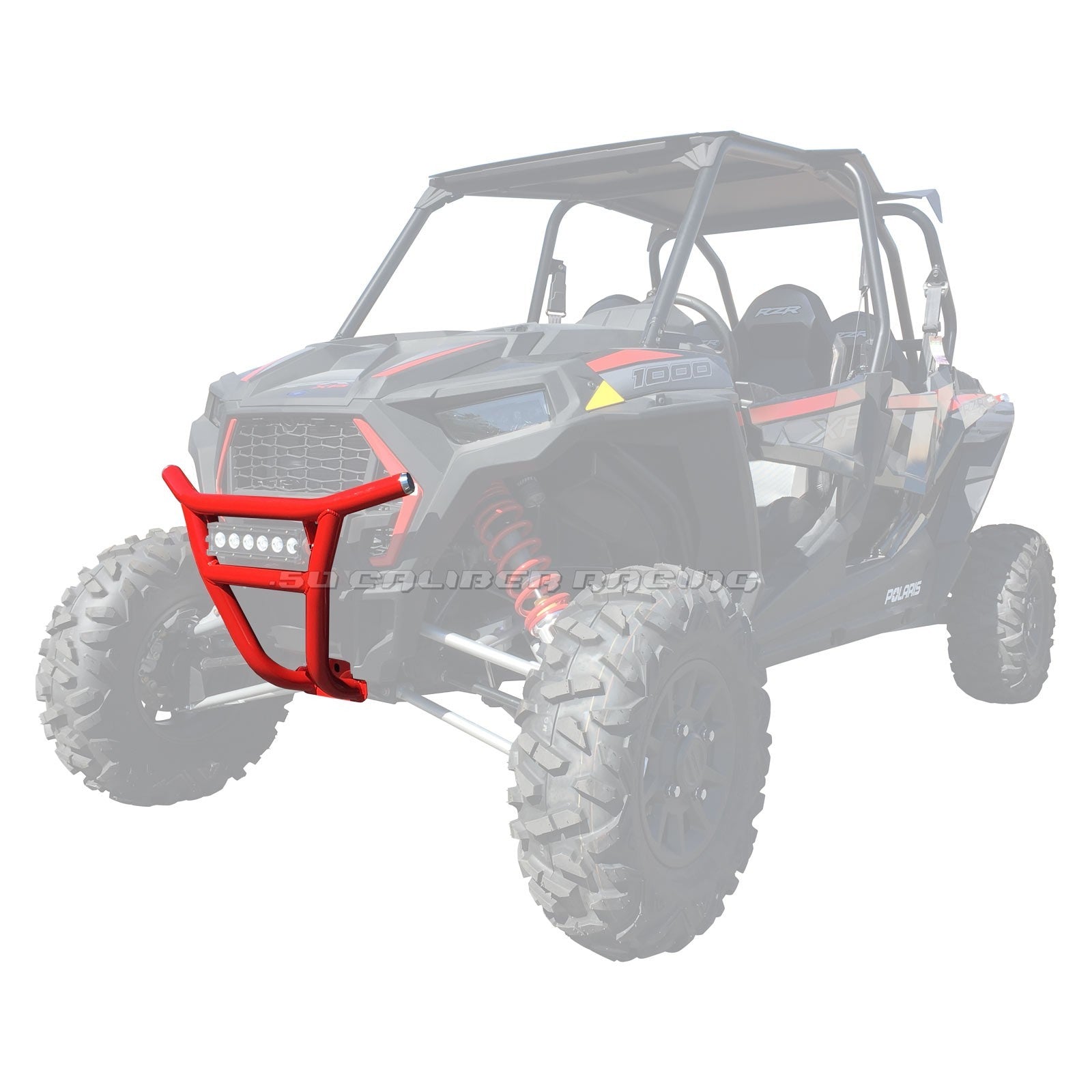 When you take your RZR off road, anything can happen. Add some protection with our heavy duty steel bumper. Constructed from .095 wall steel tubing, this bumper is strong yet lightweight. Hand welded joints for strength and powdercoated for a durable, long lasting finish. Bolt on design, with tabs for a 50 Caliber Racing 11 inch Elite light bar (sold separately part #5045-c). We designed these bumpers for our factory sponsored racers cars and run them in every race. They are stout and built to handle abuse. Includes our premium CNC machined end caps.