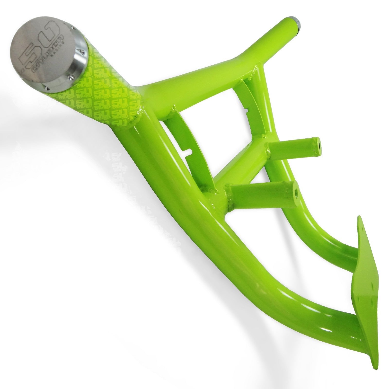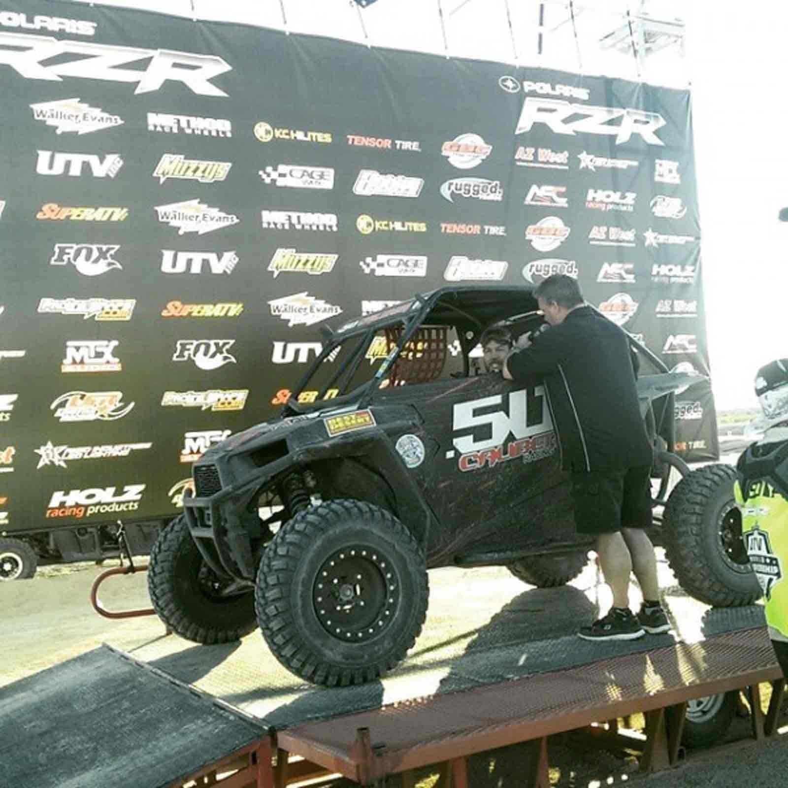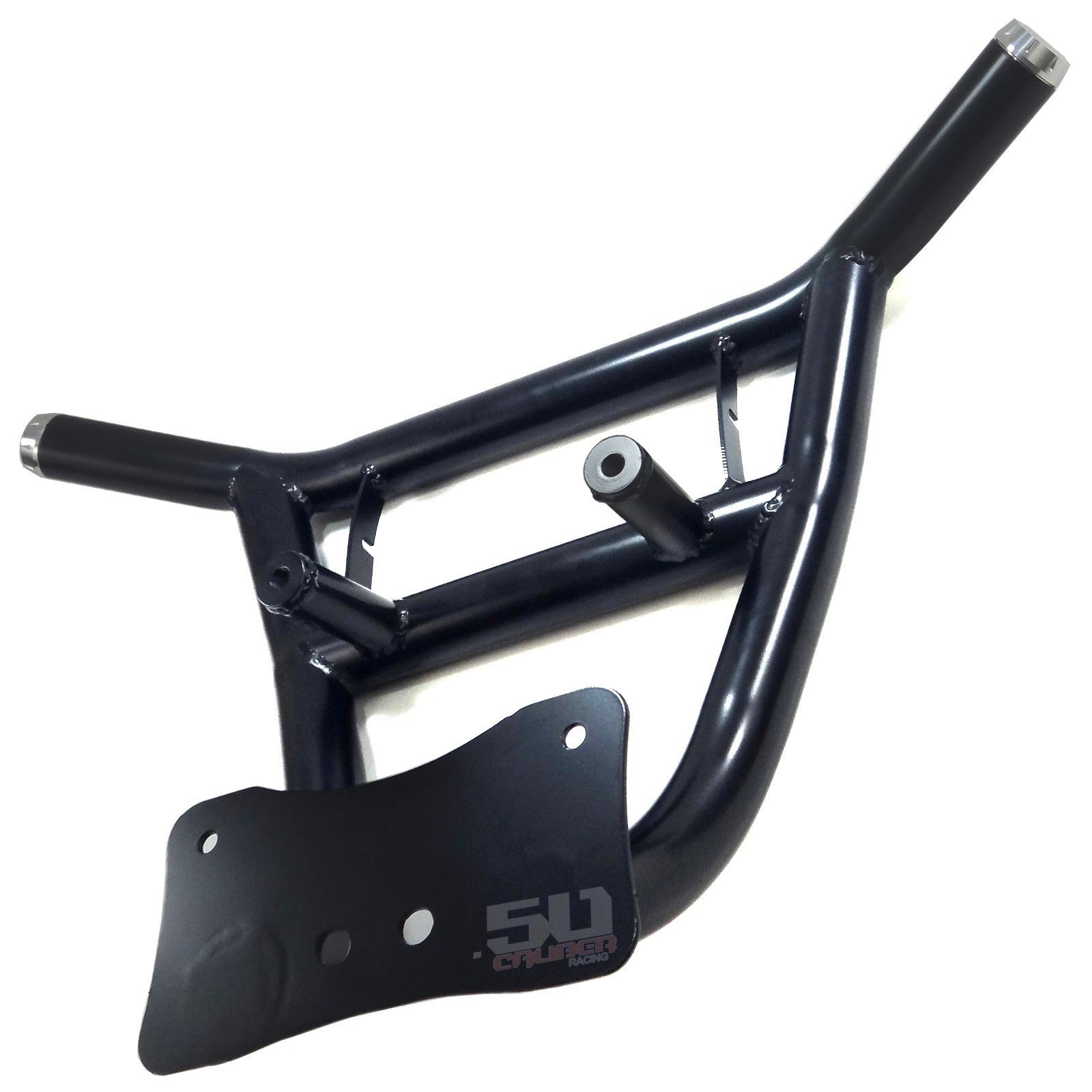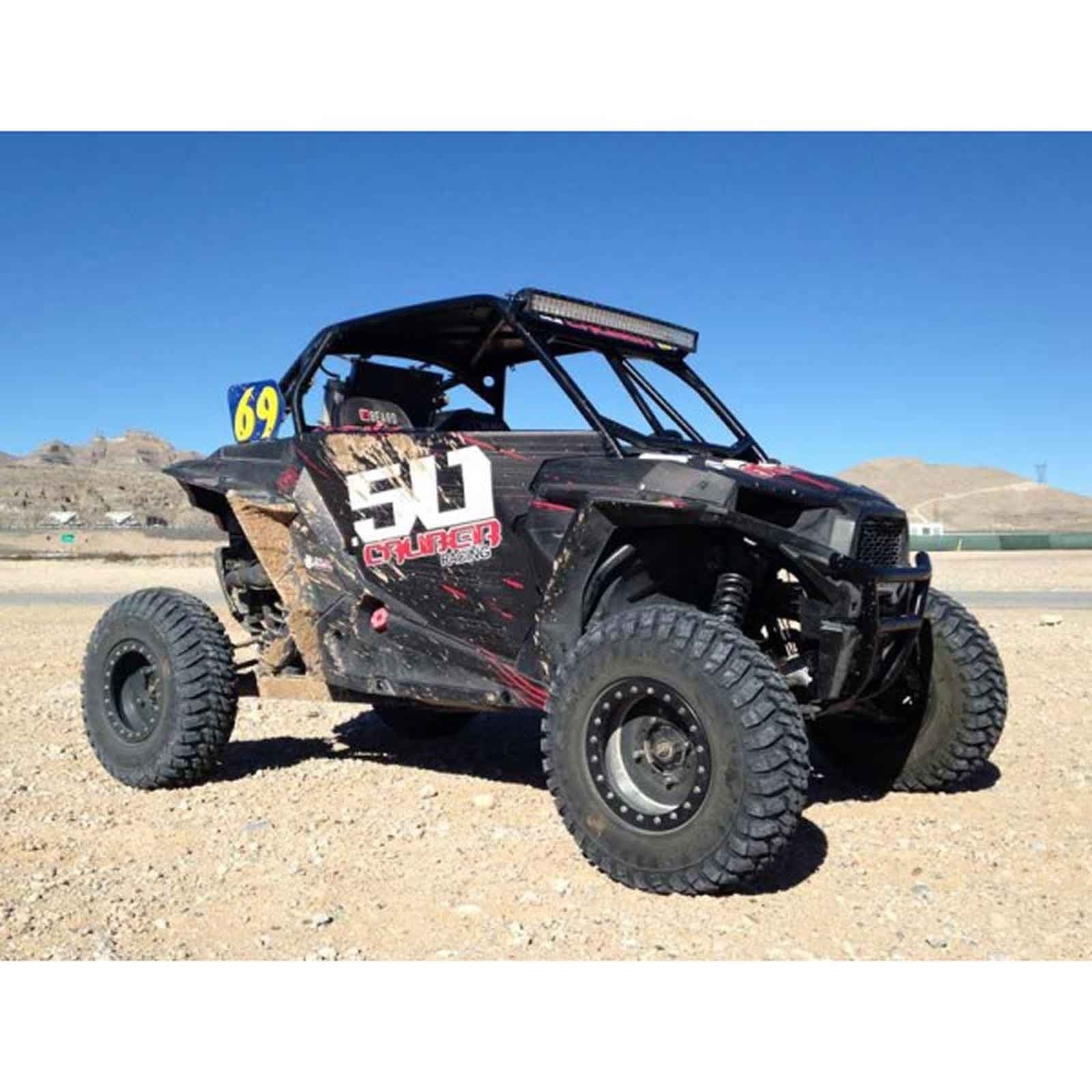 When you take your RZR off road, anything can happen. Protect your RZR with our heavy duty steel bumper. Constructed from .095 wall steel tubing, this bumper is strong yet lightweight. Hand welded joints for strength and 6 different powdercoat finish adds to your RZR’s custom look. Includes our premium CNC milled end caps. We designed these bumpers for our factory sponsored WORCS cars and run them in every race. They are stout and built to handle abuse. Bolt on design. 100% hand-built in the USA by 50 Caliber Racing. Front Bumper ONLY, does not include 11 inch Elite light bar part #5045-C .