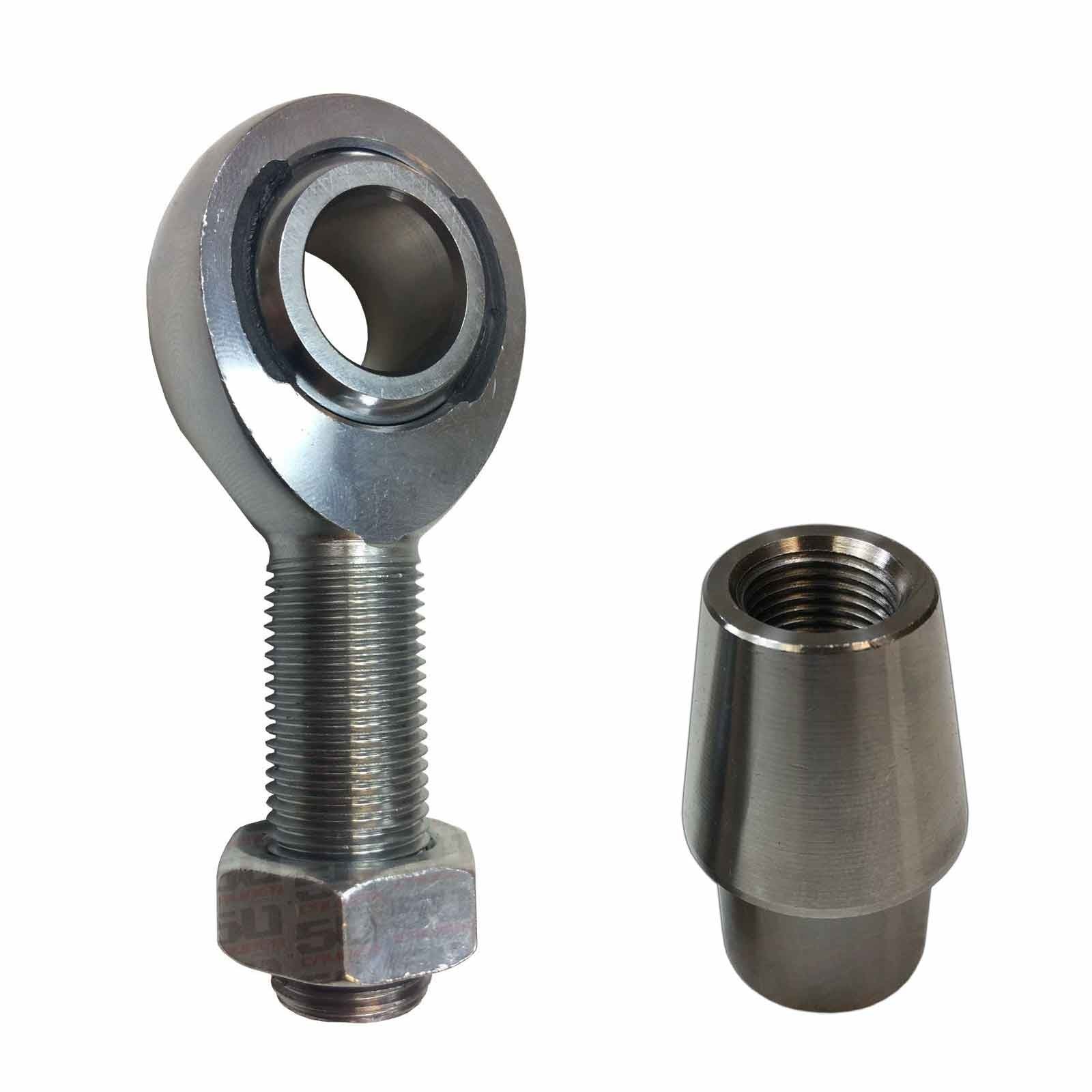 Single rod end kit including a 5/8 x 5/8 heat treated heim joint, jam nut, and a steel weld in bung tube adapter. Designed specifically for 1.25" OD tubing with with wall thicknesses of .095 or .120. Our heim joints are made from 4130 Chromoly steel, with a nylon/teflon (PTFE) liner. The load rating and size make these excellent for building custom sway bar links, tie rods and radius arms for UTVs, go karts, and more. Available with or without misalignment spacers.
