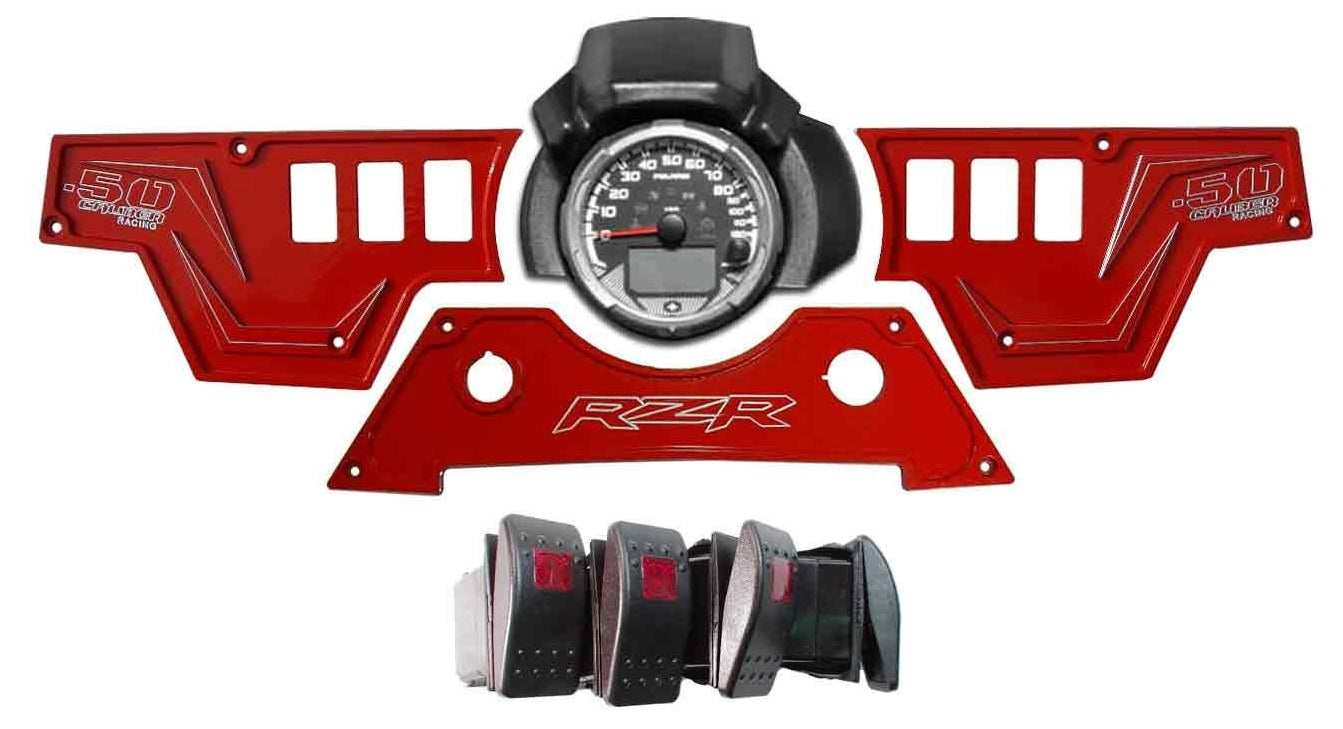 3 piece 6 Switch Billet Aluminum CNC Dash panel upgrade for your RZR XP 1000. This panel adds additional switches to your RZR for lights and accessories and gives you a very cool custom look.